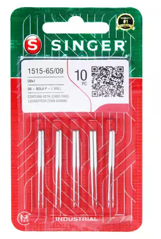 Descrição: Agulha Industrial modelo 1515 tamanho 10, para tecido de algodão, embalagem com 10 unid.
