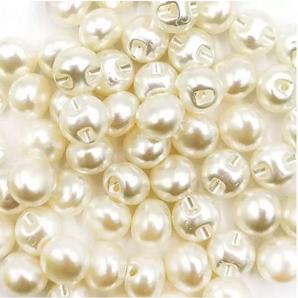 Botão pérola noiva, com passante horizontal, que permite o botão esconder totalmente qualquer vestígio de linha e costura abaixo da peça, dando um efeito flutuante muito bonito. Produto ideal para decorar roupas, calçados, bijuterias, bolsas, chinelos e artesanatos em geral.